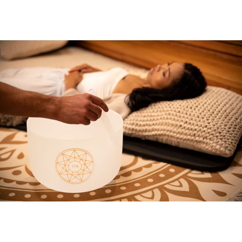 Los cuencos de cristal Solfeggio de energ¡a s¢nica de Meinl esmerilados en blanco est n hechos con frecuencias antiguas. Las frecuencias de Solfeggio son vibraciones de sonidos que se dice que tienen un efecto curativo y que promueve la salud en nuestro cuerpo, mente y alma. Ya en la antigedad estas frecuencias eran conocidas y utilizadas para el tratamiento de enfermedades f¡sicas y ps¡quicas. Por ejemplo, los monjes utilizaron estas frecuencias hist¢ricas en sus corales gregorianos y vieron un efecto curativo en la transmisi¢n de las vibraciones al cuerpo. Estos cuencos tibetanos de escarcha blanca hechos de cuarzo de alta pureza crean un aura muy agradable con su sonido y dise¤o. Su tono esf?rico de larga duraci¢n se extiende cuando el cuenco tibetano se golpea suavemente o se frota para que la energ¡a se sienta en todo el entorno. Todos los cuencos de cristal se entregan con un anillo de silicona para evitar posibles impactos y garantizar la mejor resonancia. Puede usar cuencos de cristal para una variedad de prop¢sitos: curaci¢n de chakras, meditaci¢n, terapia de sonido, yoga, mejorar el Fengshui de su hogar, ajustar su estado emocional o incluso para decorar la habitaci¢n. 174Hz: es la frecuencia de la energ¡a de la Tierra, que crea una conexi¢n entre nosotros y nuestro planeta. Se dice que tiene un efecto analg?sico.
