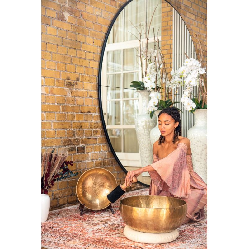 'Los cuencos tibetanos de la serie Meinl Sonic Energy Grounding son extraordinarias obras maestras de artesan¡a y sonido. Estos cuencos tibetanos gigantes y raros se adaptan perfectamente a la terapia de sonido, ya que producen tonos profundos, vibraciones potentes y un largo sustain gracias a su gran di metro. Tambi?n puede experimentar la sensaci¢n £nica de las vibraciones que fluyen a trav?s de su cuerpo al pararse dentro del cuenco mientras se toca con un mazo. Estos cuencos est n fabricados en la India con una aleaci¢n de bronce especial y artesanos del metal los martillan a mano para producir su sonido inmensamente rico. El cuenco sonoro es excelente para comenzar un masaje sonoro, para ''conectar a tierra'' a los participantes y para promover la conciencia corporal y la circulaci¢n sangu¡nea. Para jugar, recomendamos nuestro mazo Grounding Singing Bowl (modelo n.§ SB-PM-XXL) con mango extralargo y cabeza de vell¢n (el mazo se vende por separado). Incluye un coj¡n de cuenco tibetano de trigo sarraceno.'